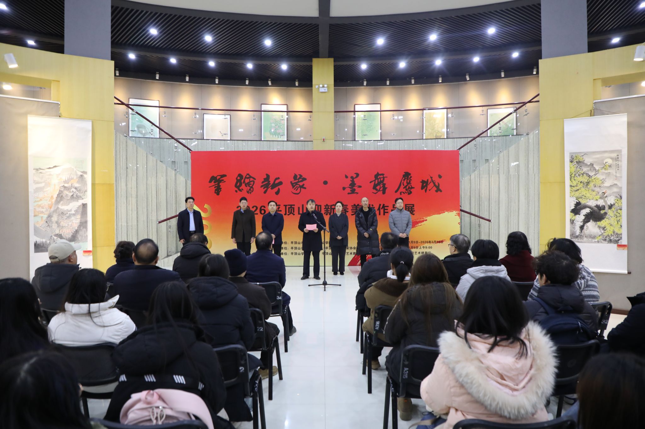 1 月 9 日上午,“笔绘新象・墨舞鹰城”——2026 平顶山迎新春美术作品展在ylzzcom永利总站线路检测艺术楼展厅开幕。ylzzcom永利总站线路检测副校长李波,平顶山市文联党组书记、主席虎静,市文联党组成员、副主席宋峰,原平顶山市美协主席彭善喜,教务处负责人,艺术设计学院师生及平顶山市美术爱好者参加此次活动。开幕式由ylzzcom永利总站线路检测ylzzcom永利总站线路检测主任、平顶山市美协主席刘斐主持。