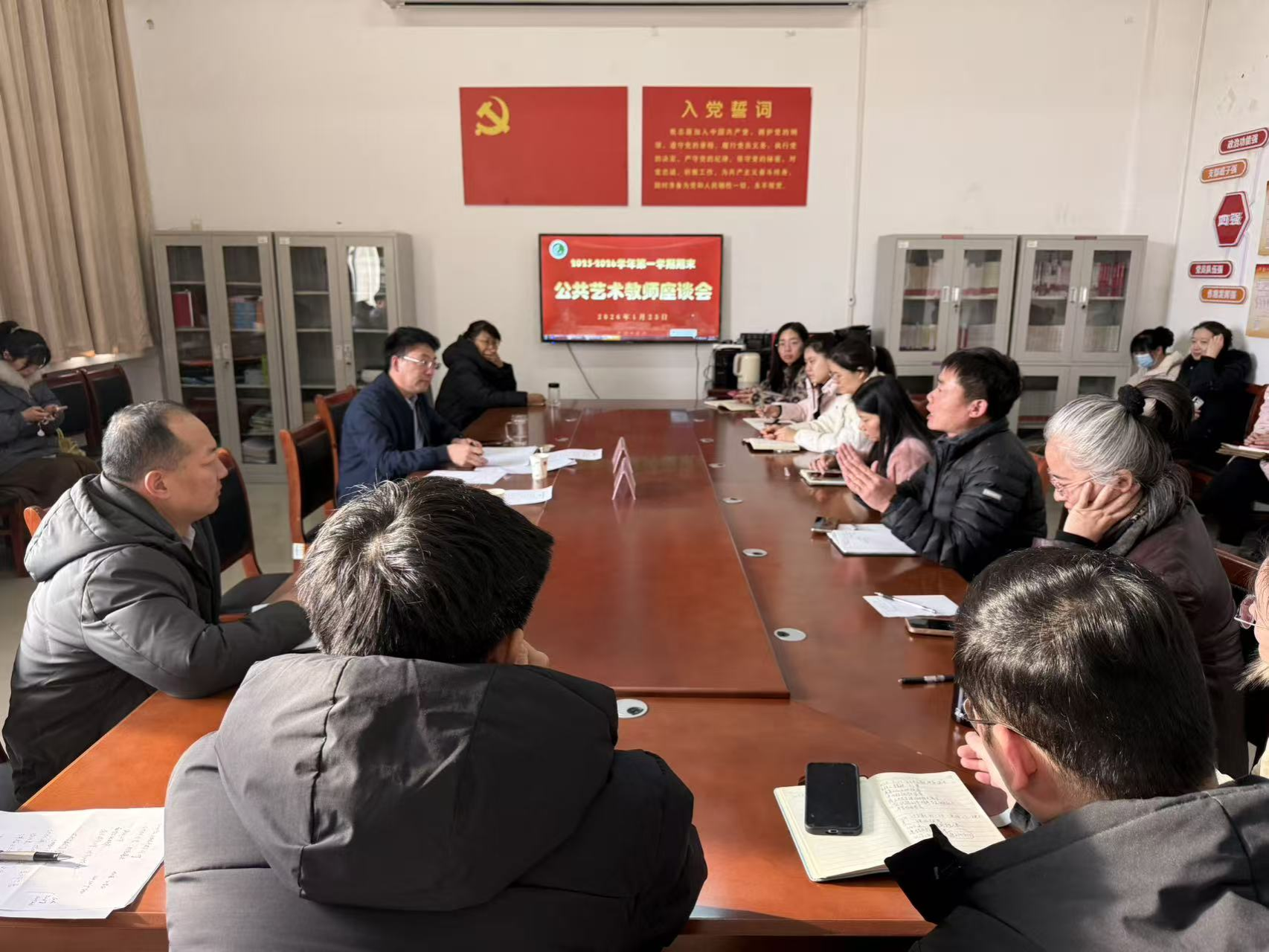 1月23日上午,ylzzcom永利总站线路检测在行政楼719会议室召开2025-2026学年第一学期期末全校公共艺术授课教师座谈会,教务处处长李青彬,艺教中心全体人员及全校公共艺术授课教师参加会议,会议由艺教中心主任刘斐主持。